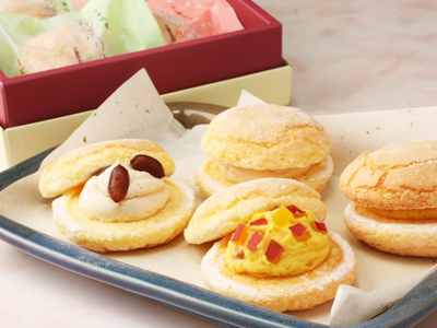 千葉の特産、さつまいもとピーナッツをクリームに織り交ぜて、ふんわりブッセでサンドしました。